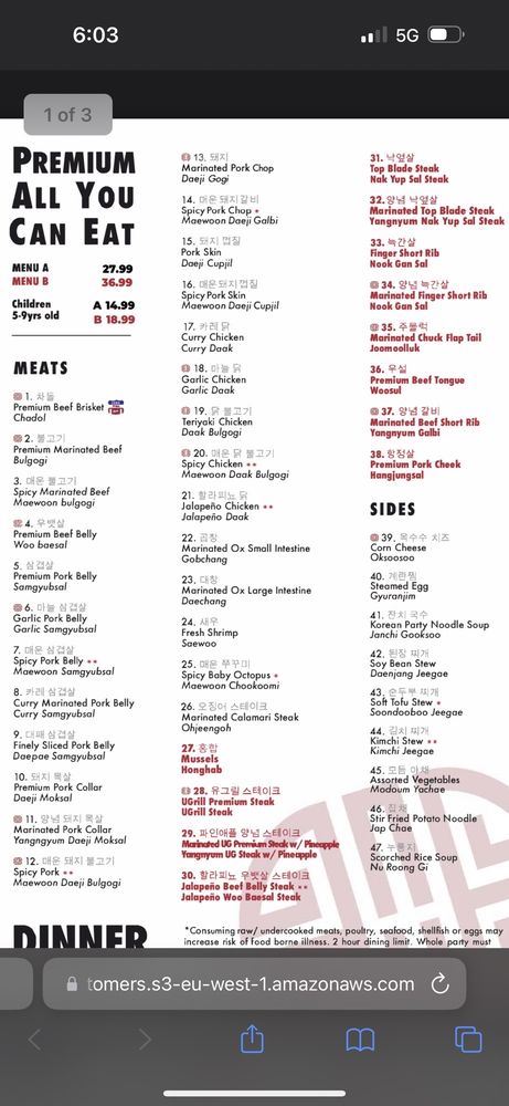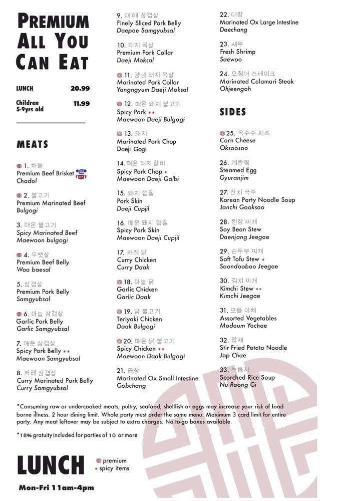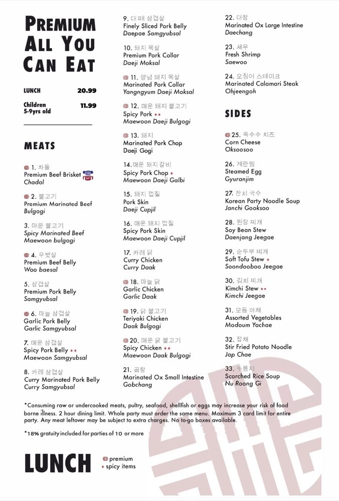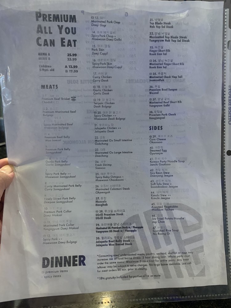 U-Grill Korean BBQ Menu (Update 2025)